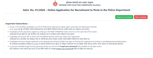 Haryana Police Constable Application Process 2026 is conducted online through the official website. Candidates who are eligibile for the exam must follow the steps below to complete Haryana Police Constable application process 2026: