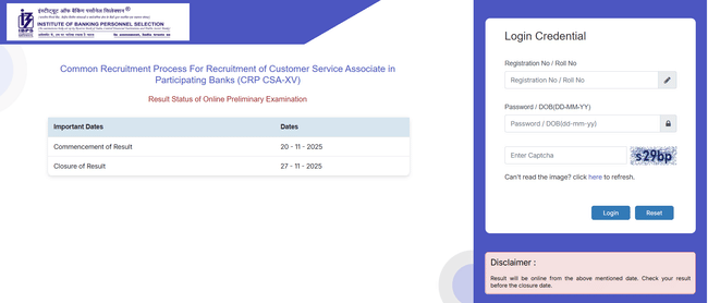 IBPS Clerk Prelims Result 2025 has been released on November 20, 2025. Candidates can access their results on the official IBPS website using their registration number along with their date of birth. IBPS Clerk 2025 Prelims exam was held on October 4, 5, and 11, 2025. Prelims result indicate whether a candidate has qualified for the Mains exam. Importantly, the marks obtained in Prelims are not considered for final selection, as the score is qualifying in nature.