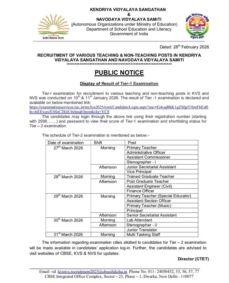 | KVS & NVS 2025 Tier 2 Exam Date | Mar 27, 2026 - Mar 31, 2026 |