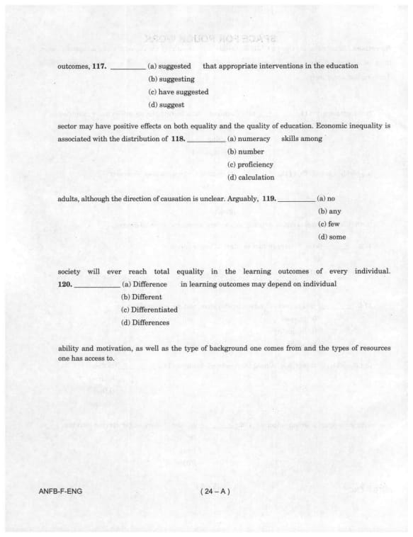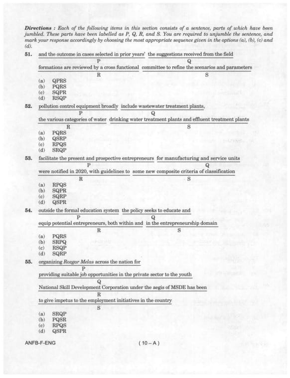 Directions: In the following item, a CLOZE question is given with ten blanks, each with four options. Select the most appropriate word from the options which fills the blanks correctly, and mark your response in the Answer Sheet accordingly.