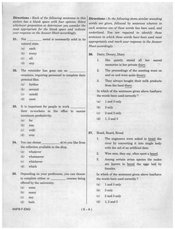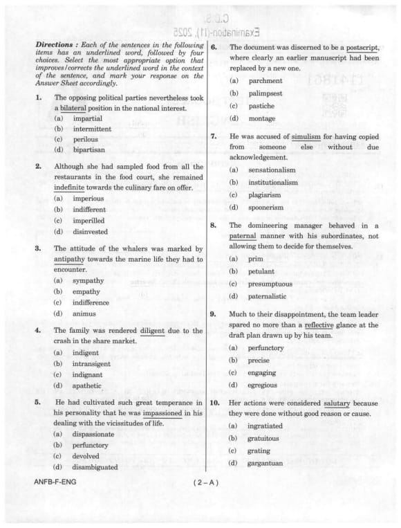 | CDS 2 2025 English Question Paper and Answer Key PDF |