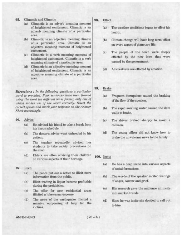 Directions: Each of the sentences in the following items has an underlined word, followed by four choices. Select the most appropriate option that improves/corrects the underlined word in the context of the sentence, and mark your response on the Answer Sheet accordingly.