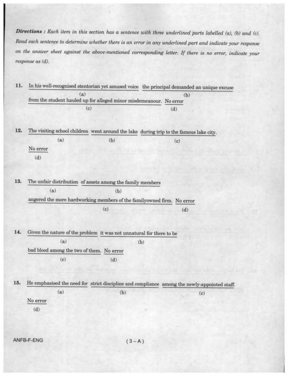Directions: Each item in this section has a sentence with three underlined parts labelled (a), (b) and (c). Read each sentence to determine whether there is an error in any underlined part and indicate your response on the answer sheet against the above-mentioned corresponding letter. If there is no error, indicate your response as (d).