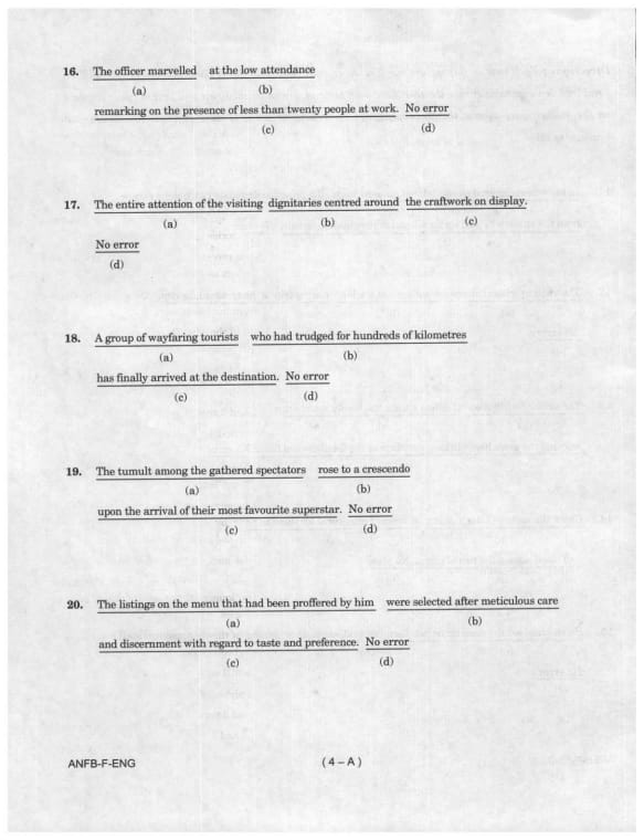 Ques. 17 The entire attention of the visiting dignitaries centred around the craftwork on display.