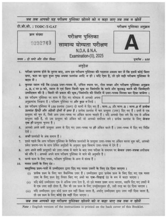 | NDA 2 2025 GAT Question Paper and Answer Key PDF |