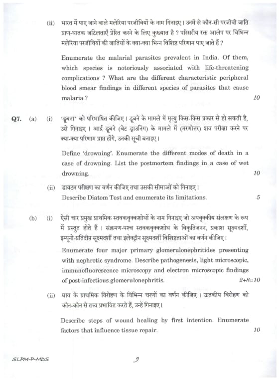 Q7 (A) (i) Define 'drowning'. Enumerate the different modes of death in a case of drowning. List the postmortem findings in a case of wet drowning.