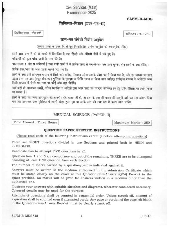 UPSC Mains 2025 Question Paper for Medical Science Optional Paper 2 is available here to download in PDF Format. The exam has been conducted on August 31, 2025, in Afternoon Session (02:30 PM to 05:30 PM). This Paper comprises 8 questions which are of 250 marks. The duration of the exam is 3 hours.