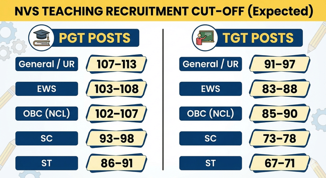 NVS Cut Off 2026 – will define the minimum marks required to qualify for the next stage of Navodaya Vidyalaya Samiti recruitment process. NVS releases cut-offs post-wise and category-wise, along with or after the result. Since the official 2026 cut-off is yet to be released, candidates can refer to the expected NVS 2026 Cutoff given below: