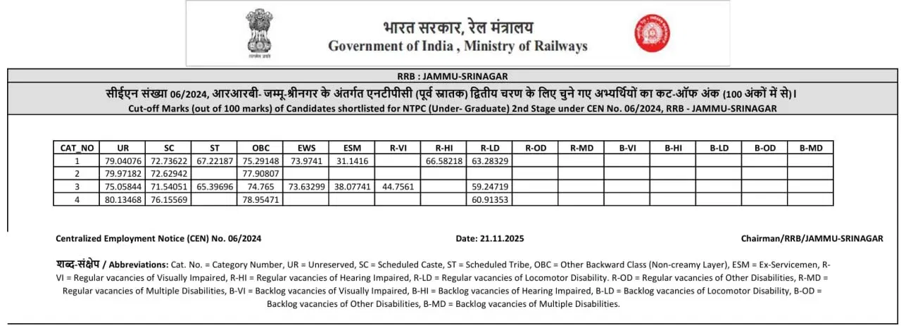 RRB NTPC Jammu CBT 2 Cutoff Level 5