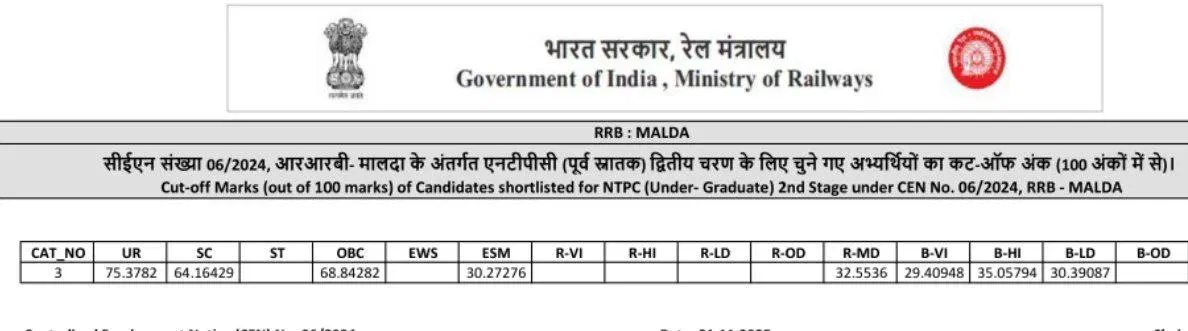 RRB NTPC Malda CBT 2 Cutoff Level 5