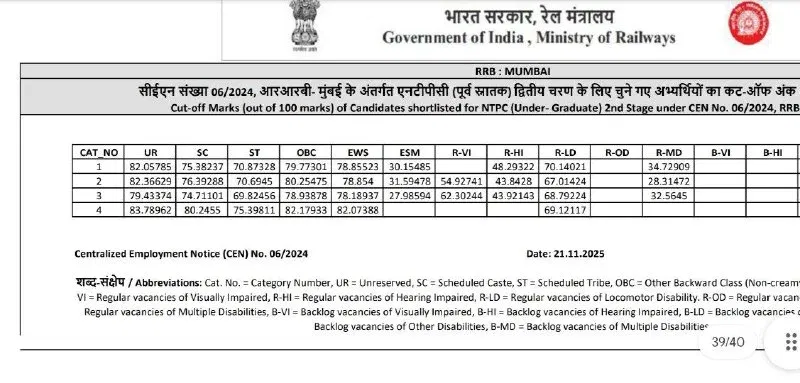 RRB NTPC Mumbai CBT 2 Cutoff Level 5